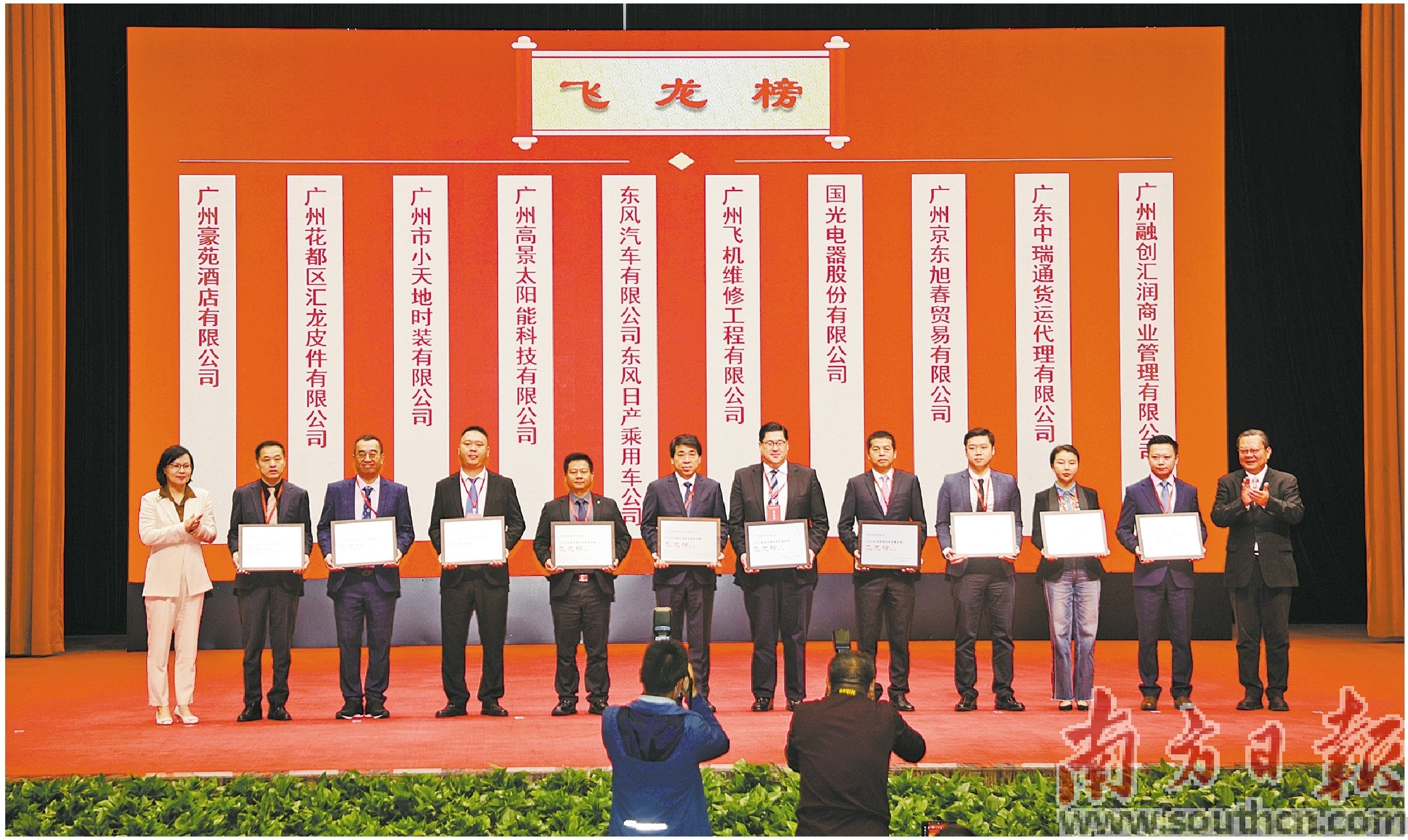 會上,花都區公布了2023年“飛龍”“巨龍”“騰龍”“蛟龍”“金龍”5大榜單,為獲獎企業頒獎,并發布了營商環境“春風送暖”措施和花都區2024年項目攻堅“揭榜掛帥”榜單。