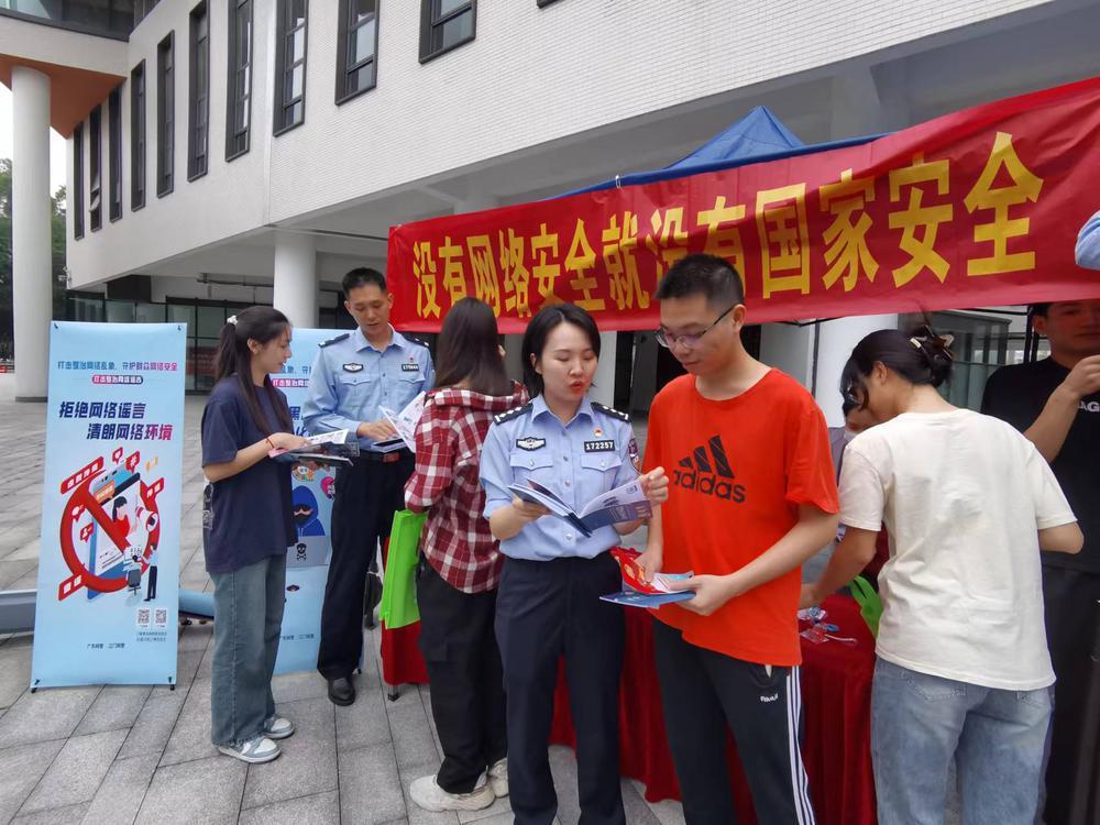 此外,江門市縣兩級網安部門緊扣活動主題,通過布設宣傳展板,發放宣傳資料,現場咨詢講解等方式,開展多場次網絡安全進校園、網絡安全進社區等線下宣傳活動,向群眾宣傳國家安全法、網絡安全法等法律法規,普及國家安全常識。同時結合2024年網絡謠言打擊專項行動,以案釋法,向群眾普及網絡謠言種類、危害以及法律后果。