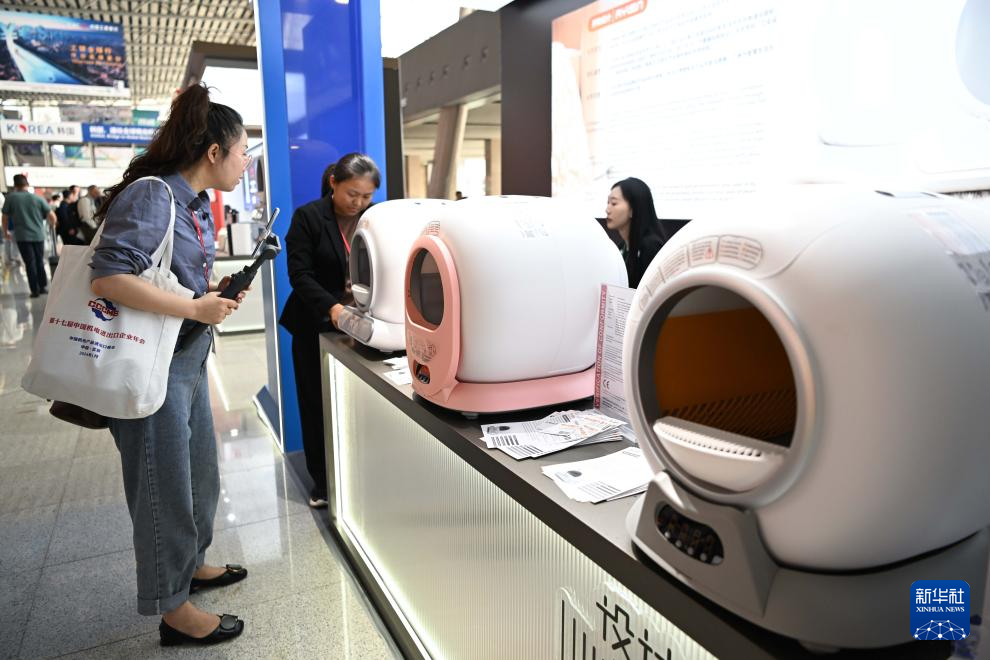 4月17日,參觀者在了解智能貓砂盆產品。新華社記者 鄧華 攝