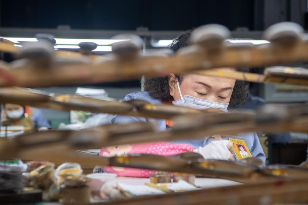 后來,一直喜歡繪畫的幸春燕找到美工師傅苦學2個月,以第二名的成績考入美工車間,開始從事更復雜的工序,為木梳繪彩、上漆。17個年頭過去,她當上了車間的殘疾員工代表,管理40多名工人,與同為殘疾員工的丈夫日子越過越美。