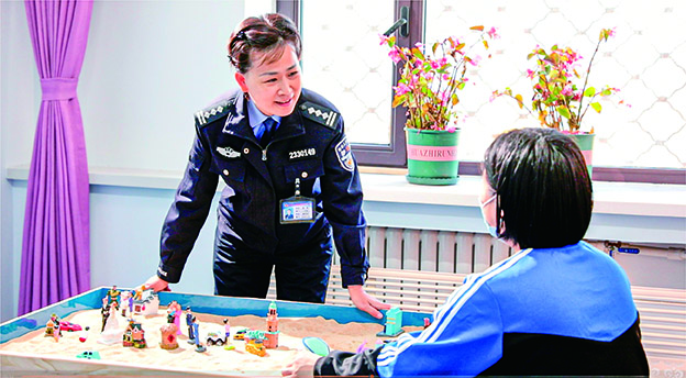 ▲多年來,師帥(左)幫助一批批戒毒人員重新回到社會,找回了生活的信心,并且成功轉化了32 名毒癮嚴重、抗拒教育戒治的戒毒人員。(黑龍江省強制隔離戒毒所供圖)