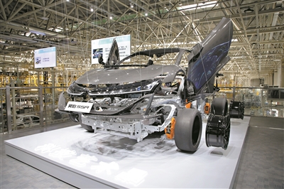 隨著車聯網的逐漸普及,網絡安全對于電動汽車來說也越來越重要。圖為廣汽埃安昊鉑組裝前的構件。