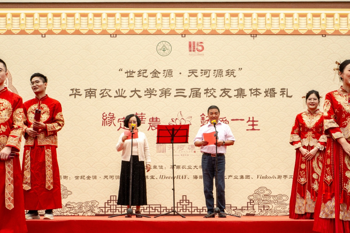 11月2日,華南農業大學舉行第三屆校友集體婚禮。在華農115周年校慶即將到來之際,52對校友新人以愛為名重返校園,用一場既有中式韻味又頗具華農特色的盛大婚禮,共慶母校華誕。