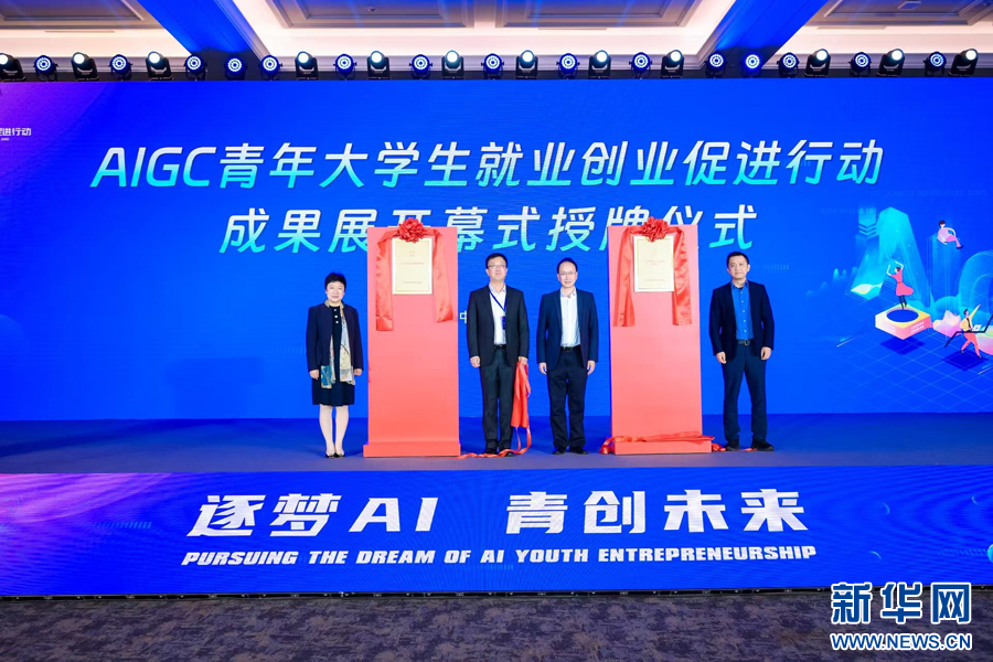 “產投研融綜合服務平臺”“AIGC成果轉化與應用中心(實驗室)”揭牌。新華網發(主辦方供圖)
