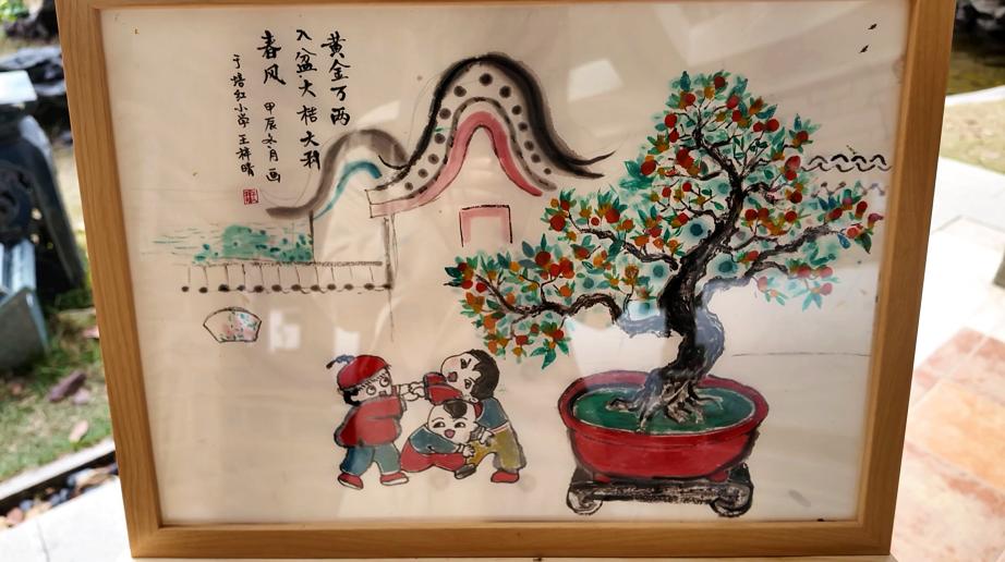 在盆景展現場,還展出了廣州市海珠區培紅小學30多位小學生的盆景畫作,由廣州盆景協會常務副會長、嶺南盆景基地非物質文化遺產傳承人陳建成指導完成。