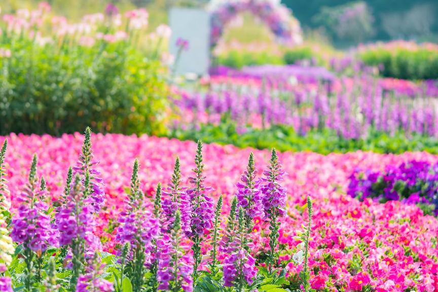 其中,占地4500平方米的玫瑰園,種植200多個玫瑰品種,包括罕見的明代香水月季王,搭配純白玻璃殿堂,形成兼具莊園風與童話色彩的景觀。在主景點花埭灣,第32屆園博會的主題花之一——大花飛燕草點綴其中,與毛地黃、波斯菊、桑貝斯、鳳仙、醉蝶花等一起匯成一片粉紫色的花海。