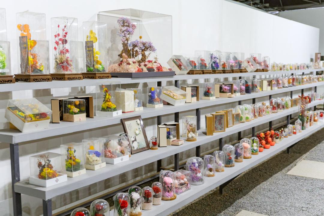 “這是我們公司生產的永生花系列產品”,據溪林園藝董事長助理胡振東介紹,這些微景觀產品都是由新鮮的花材制作而成,把新鮮的玫瑰花、康乃馨等花材采摘后放進冷庫保鮮儲存,經過冷萃、鎖色固色、上色、定型等工序,反復制作多遍后制成永生花的花材成品,最后再用永生花花材制作成花禮成品。