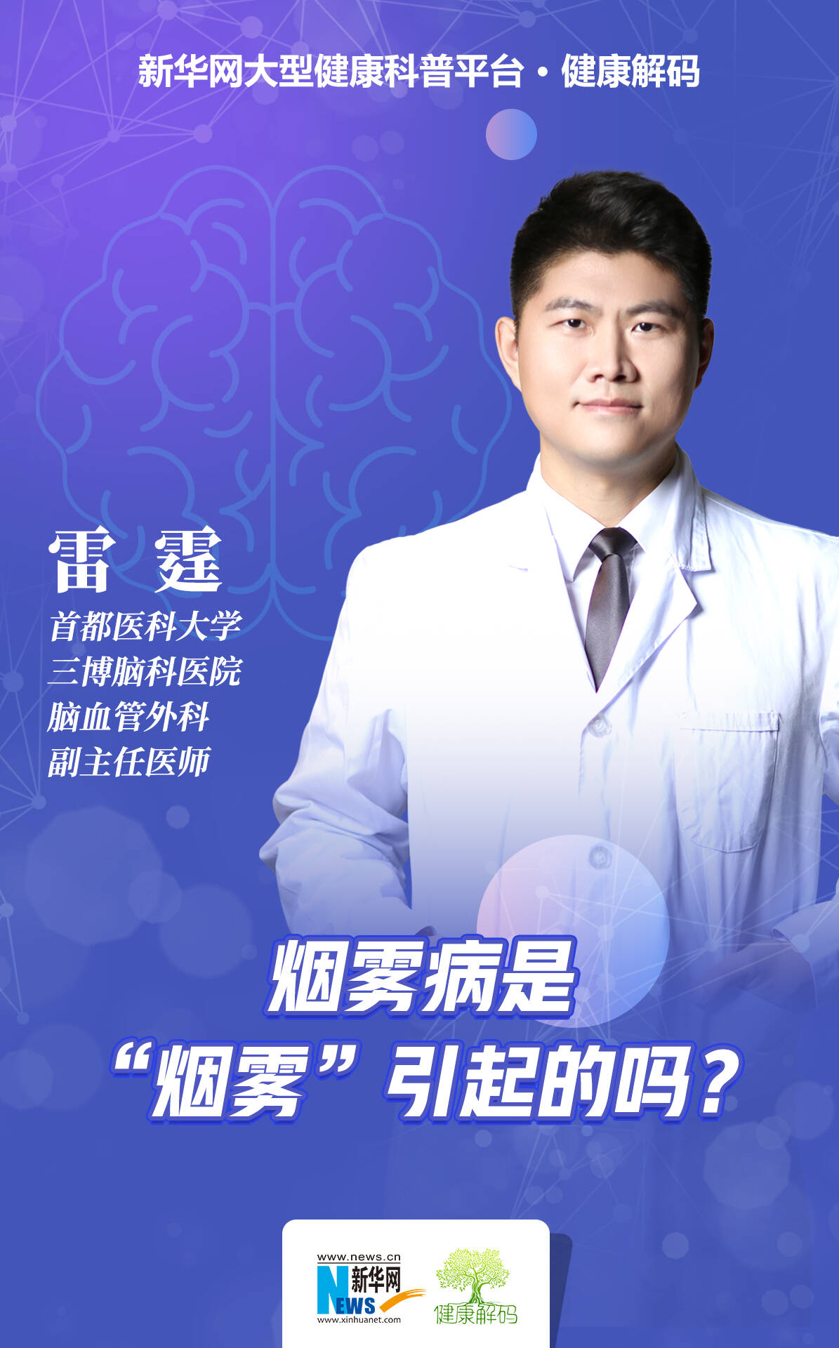 首都醫科大學三博腦科醫院腦血管外科科研副主任、副主任醫師、醫學博士雷霆做客新華網《健康解碼》欄目