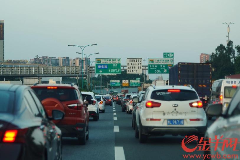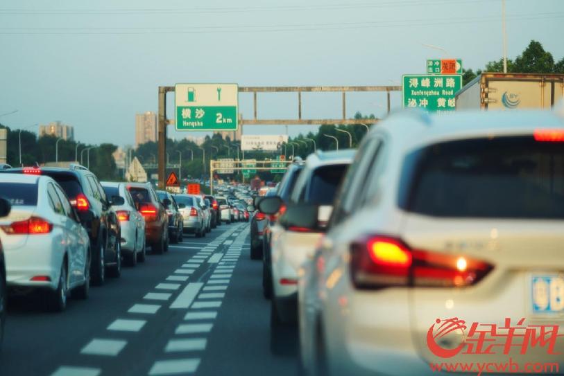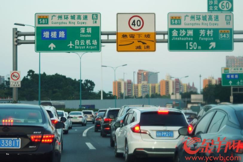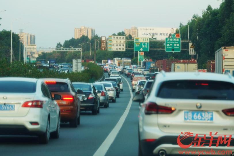 2021年10月5日,國慶假期即將結束,廣州回程的車流也增多了。下午5點許,沈海高速廣州支線橫沙服務區附近,進廣州城方向車輛行車緩慢,車龍排了約12公里。羊城晚報全媒體記者 林桂炎 攝