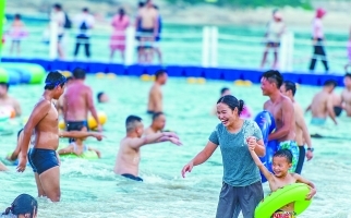 連日來的高溫天氣催火了“涼經濟”。不少景區打出清涼牌,冷飲、冷品等持續熱銷,游泳場等成人們消暑的好去處。圖為深圳大鵬西涌濱海旅游度假區,市民游客在戲水。南方日報記者 朱洪波 攝影報道