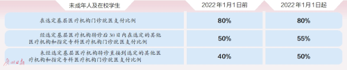 “兩個辦法”提高了未成年人及在校學生的普通門診報銷比例。2022年1月1日起,經選定基層醫療機構轉診后30日內就醫的由統籌基金支付的金額比例由原來的50%提升至55%,同時調整了參保人員大病保險資金的支付比例。此外,新辦法還允許廣州市高層次人才未就業的配偶及其子女等成員參照本辦法執行。新辦法自印發之日起施行,有效期5年。