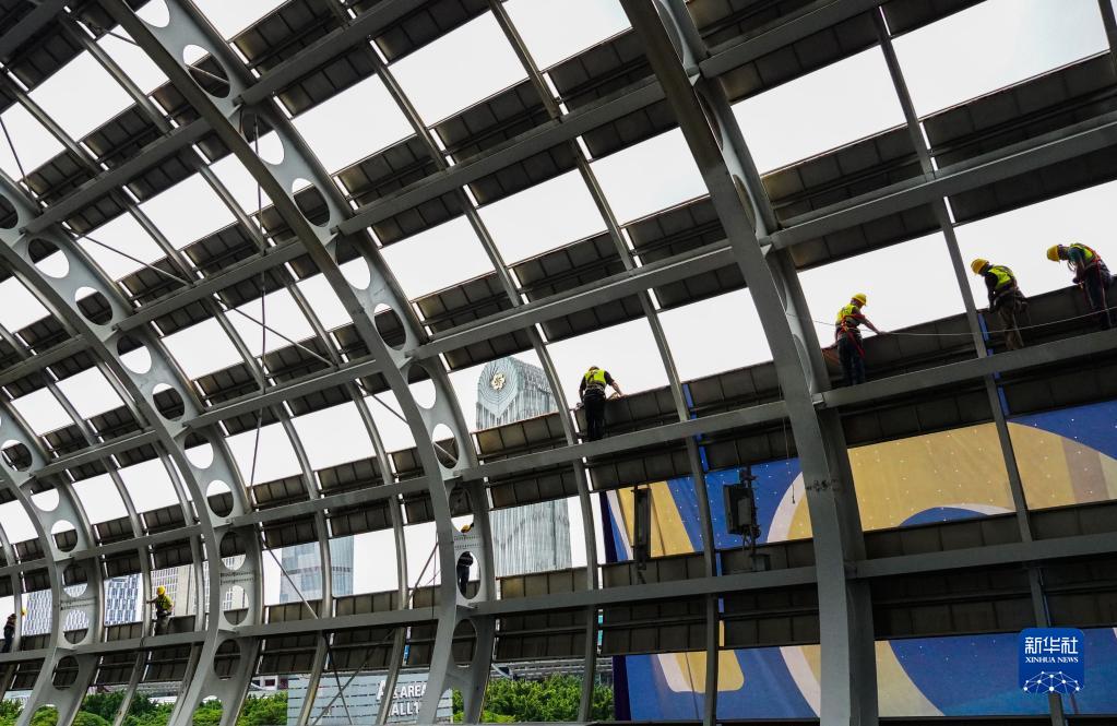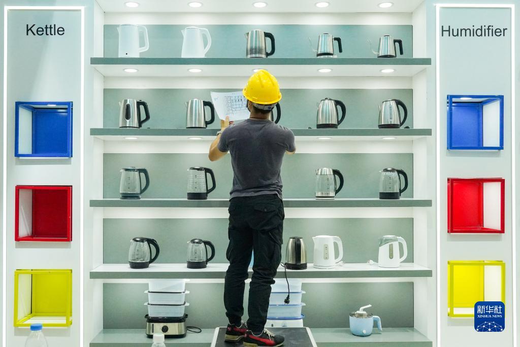第130屆中國進出口商品交易會(簡稱廣交會)將于10月15日開幕,目前,參展商正在緊張布展籌備。這是首次線上線下融合舉辦的廣交會。