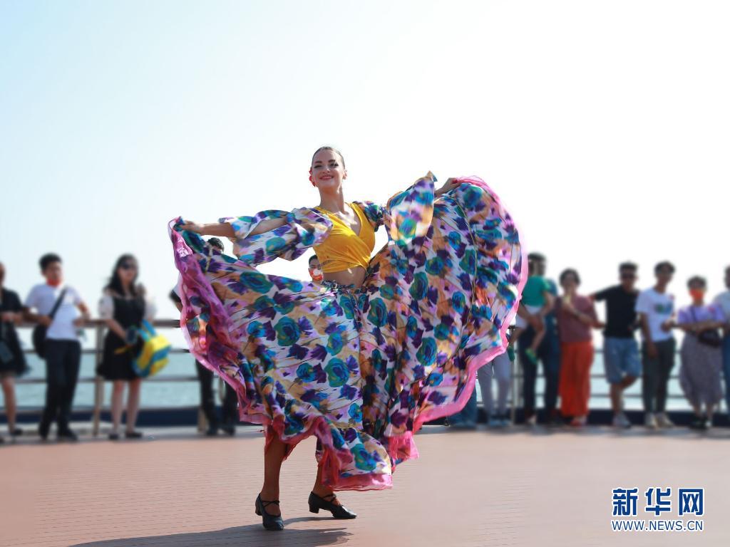深圳招商蛇口國際郵輪母港有限公司還與深圳世界之窗有限公司文旅融合,推出了以“舞動灣區”世界之窗特色演藝為主題的航線,熱情奔放的烏干達傳統舞蹈,彩色羽毛裙搭配著氣勢磅礴的鼓聲,讓游客近距離感受到非洲舞蹈的魅力。