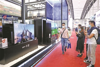 記者巡展過程中注意到,電視機行業在洞察用戶觀看習慣的基礎上,不斷進化產品。在康佳電視展位,工作人員向記者演示了“豎屏玩電視”的效果,只需在側面輕輕一撥,電視畫面即可旋轉為豎屏,免去了橫屏觀看短視頻時畫面太小的煩惱?!拔覀兺ㄟ^增加重力感應和機械旋轉將TV變成手機大屏,這對電視傳統的觀看模式是一個顛覆?!笨导央娨曊刮恢v解員說道。