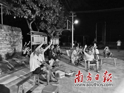 9月14日,楊柑鎮新埠茅塘村動員會現場,村民紛紛舉手同意道路硬底化建設。