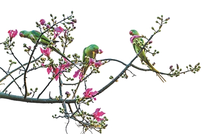 流花湖公園的野生鸚鵡。拍客劉翀 攝
