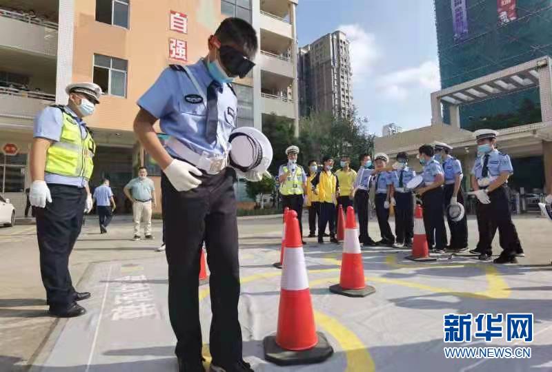 活動現場,揭陽交警市區二大隊民警帶領新河中學全體少年交警隊員,規范學習了交通指揮手勢。民警還為全校師生帶來了一份“交通安全”大禮包,組織了形式多樣的交通安全宣傳活動。安全頭盔模擬實驗、安全騎乘摩電小課堂活動、警用摩托車、貨車盲區體驗活動……看著民警展示的設備,同學們躍躍欲試。在醉酒模擬體驗環節,同學們排隊依次戴上“醉酒體驗眼鏡”,切身體會酒駕感覺;在貨車盲區體驗區,同學們先后坐在貨車駕駛室體驗,直觀了解大貨車盲區的危險性。