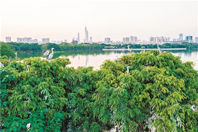 海珠濕地鷺鳥成群。