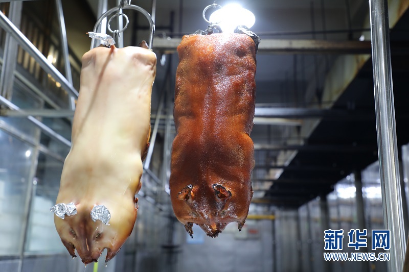 “每一只豬,我們都要親自去屠宰場挑選?!辟囀闲值芙榻B,脆皮乳豬的制作有著嚴格的生產工藝和流程,每只生豬重量控制在8至9斤。圖為生豬開殼。新華網 陳雪瑩/文 林曉蕾/圖
