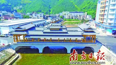 這座橋叫洛陽風雨廊橋,坐落在瑤安洛陽河上,連接洛陽河東西兩岸,是在原來老橋的基礎上新建而成,今年9月9日正式竣工,全長36米、寬13米,它的竣工解決了困擾瑤安瑤族鄉2500多名群眾多年的出行難題。