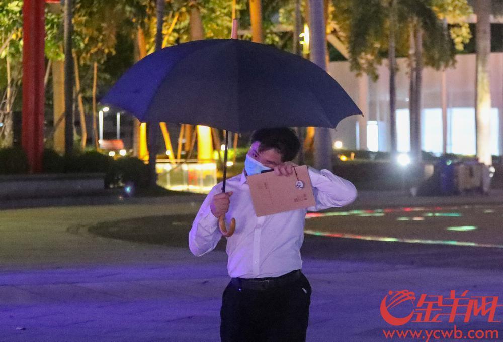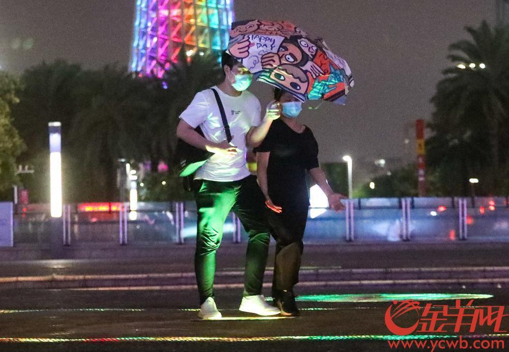 11月7日晚,“立冬冷空氣”攜風雨來到廣州,市民頂著風雨撐傘出行