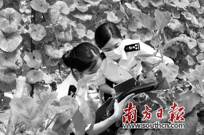 海關關員查看出口農作物生長情況。黃埔海關供圖