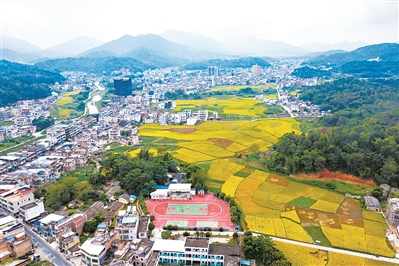 航拍鏡頭里的梅州市豐順縣潘田鎮,猶如一幅色彩斑斕的畫卷。