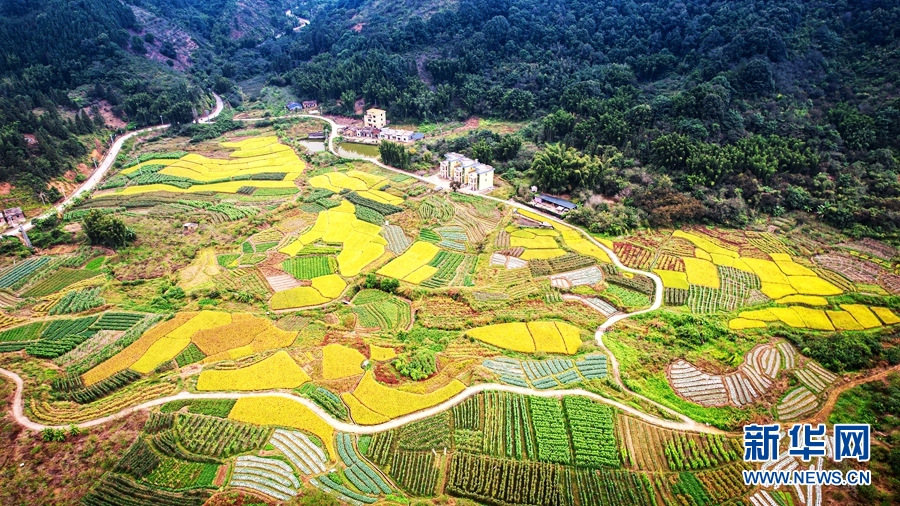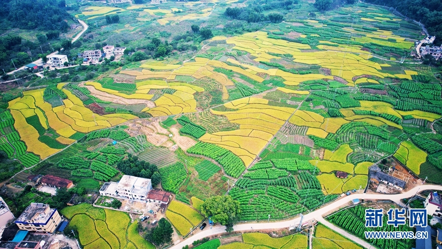 在呂田鎮桂峰村,房屋鱗次櫛比,稻田層層疊疊,景色美如畫。新華網發(黃巧珠攝)