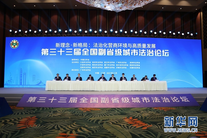新華網廣州11月18日電(關錦恒)第三十三屆全國副省級城市法治論壇17日在廣州召開,論壇以“新理念·新格局:法治化營商環境與高質量發展”為主題。來自全國15個副省級城市的法學法律界專家學者、實務工作者、社會工作者通過“線上+線下”融合模式參加論壇。
