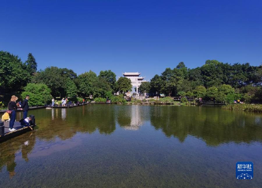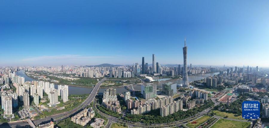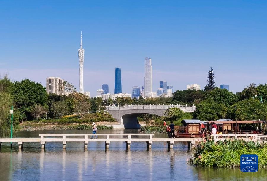 近日,受南下冷空氣影響,廣州市區天藍如洗,市民紛紛走出家門,感受城市美麗景色。新華社記者 劉大偉 攝