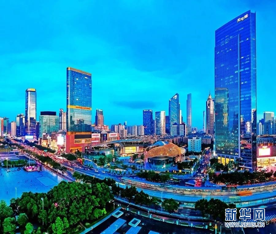 夜幕下的廣州燈火旖旎。新華網發(藍遠峰 攝)