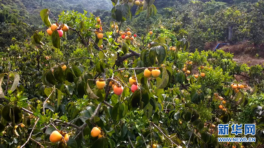 成熟飽滿的柿子掛滿枝頭。新華網發(胡東和攝)