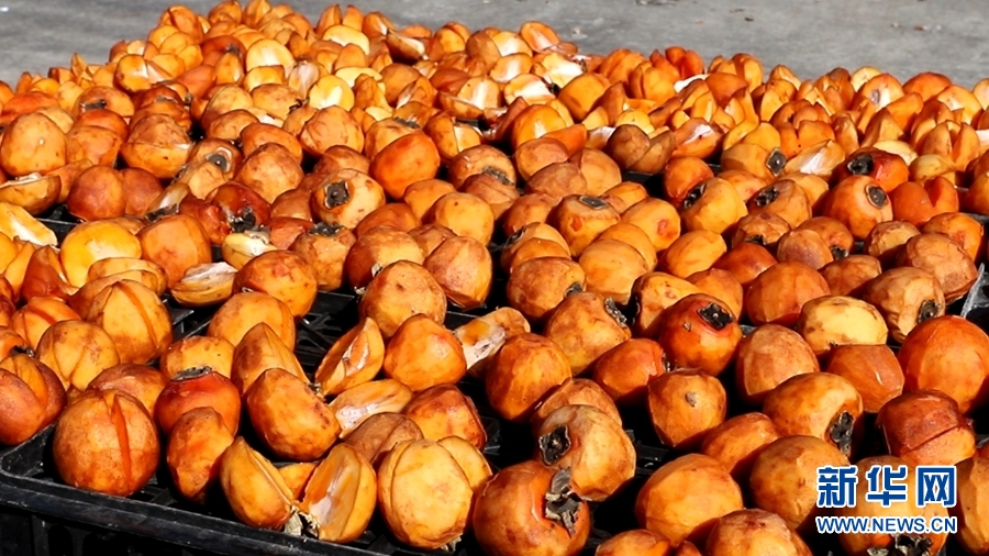村里不少村民家的樓頂和門前屋后都曬起了柿子干。新華網發(羅素玲攝)