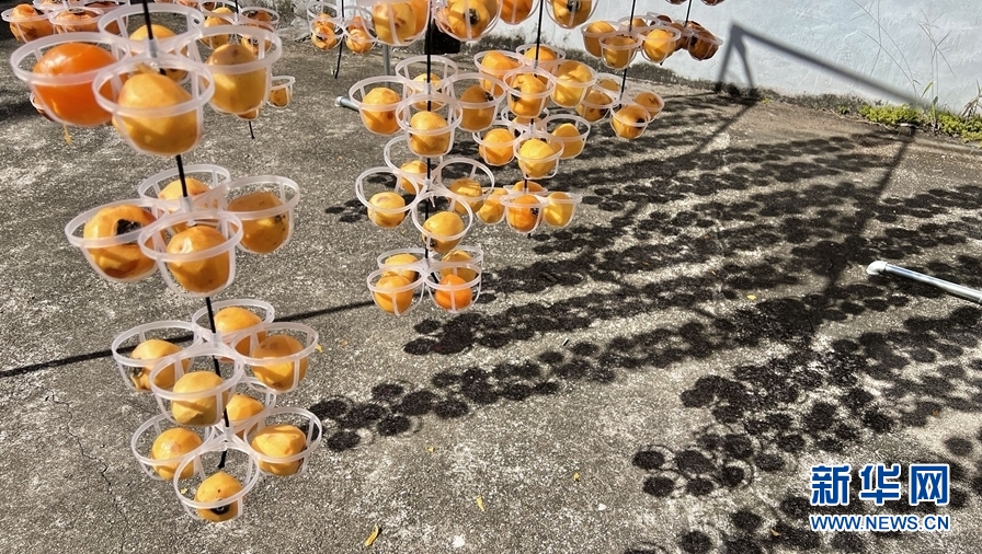 冬日暖陽,在廣州市從化區江埔街上羅村,正是柿子晾曬好時節。新華網發(羅素玲攝)