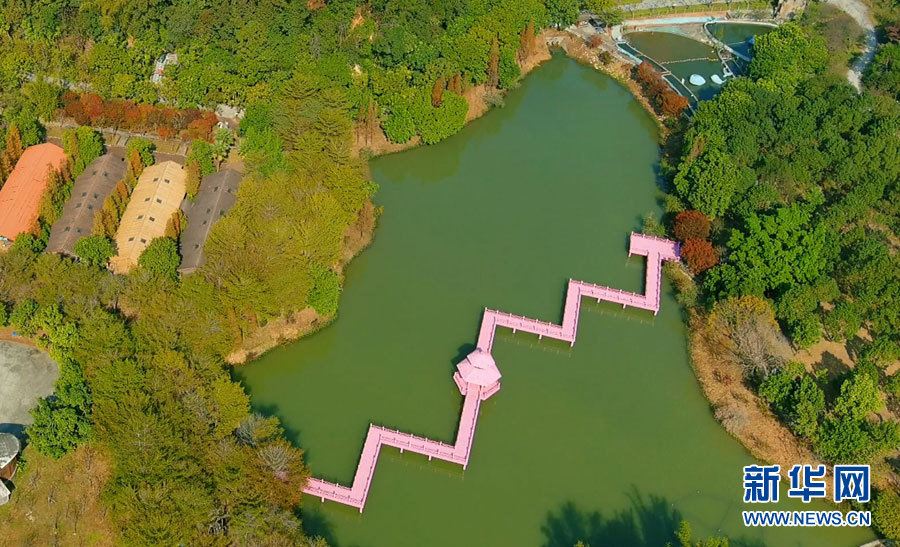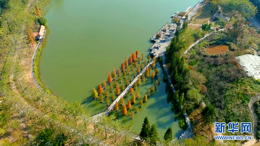 原本青秀的山巒,變得色彩斑斕,為冬日帶來一抹亮麗的“楓”景線。新華網發(鐘家珠攝)