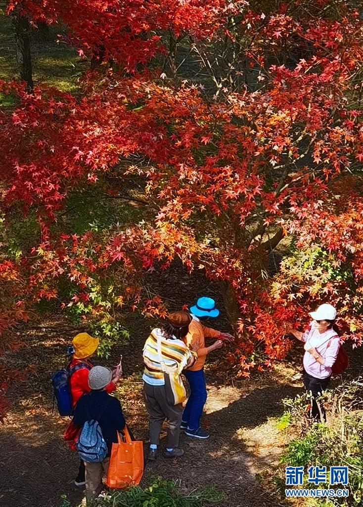 楓葉紅了,吸引不少游客前來觀賞游玩。新華網發(任秀華攝)
