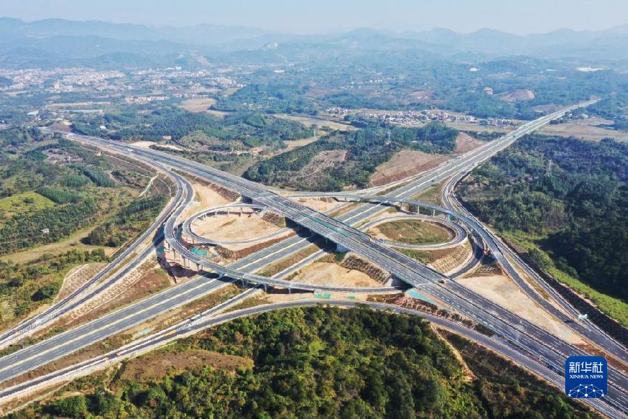 位于清遠市清城區的廣連高速三鳳里樞紐互通,上跨汕湛高速公路(無人機照片,12月19日攝)。