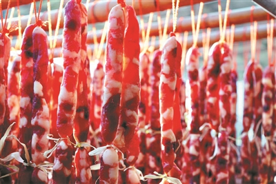 近日,在韶關樂昌的大街小巷亭臺院落間,伴著冬日的暖陽,隨處可見一串串、一塊塊、一砣砣、一根根、一條條讓人眼花繚亂的臘肉、臘腸、臘鴨、臘魚、臘豬蹄。冷冽的北風起時,一陣陣馥郁的肉香四處飄蕩。這是鹽的味道,山的味道,風的味道,陽光的味道,也是時間的味道,人情的味道。這些味道,才下舌尖,又上心間,讓人們幾乎分不清哪一個是滋味,哪一種是情懷。