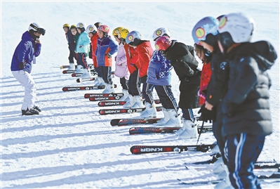 體育課上學生嘗鮮滑雪。@視覺中國