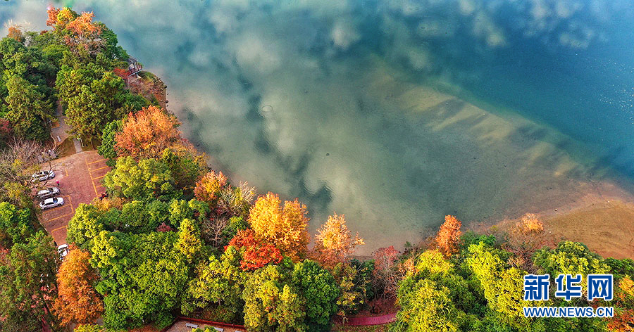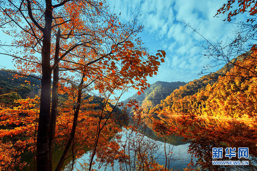 紅葉、山巒、湖泊......仿佛都是大自然的顏料。新華網發(李儉 攝)