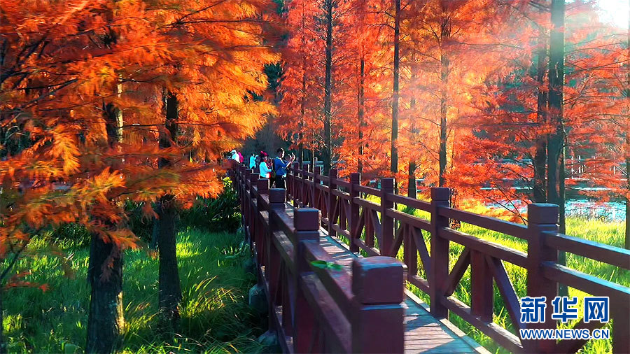 紅葉以楓香樹、山烏桕和槭樹為主要品種。新華網發(羅素玲 攝)