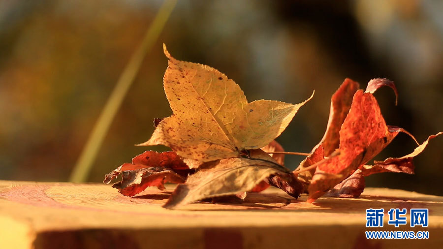 葉落成詩,公園里的每個角落都能邂逅如詩的景色。新華網發(羅素玲 攝)