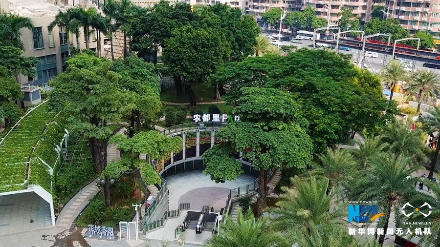 位于廣州中軸線花城廣場北端,有一座“花城農園”。新華網發