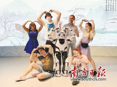 “深圳造”熊貓機器人優悠與世博會觀眾合影?!∈茉L者供圖