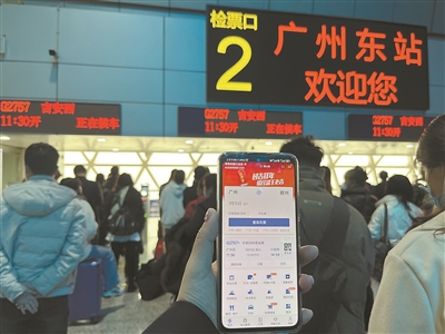 鐵路部門溫馨提示,進出站必須亮“健康綠碼”通行,嚴格落實100%體溫檢測,佩戴口罩。涉及廣州站、廣州東站的進京列車,進站乘車除出示“粵康綠碼”外,還需要檢查“北京健康寶”以及48小時核酸陰性證明。(全媒體記者黃慶 通訊員趙飛宇攝影報道)