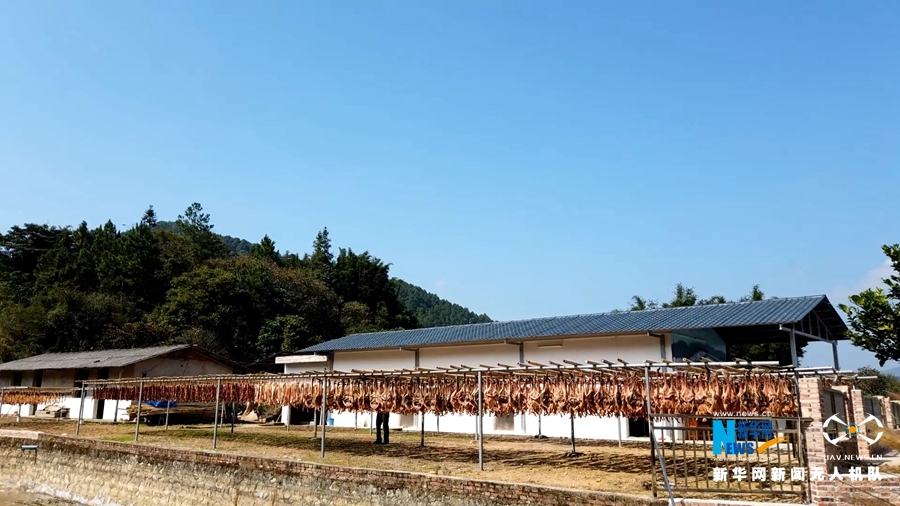 隨著春節臨近,在廣州市北部山區呂田鎮,不少村民會于自家房前屋后生曬臘味。新華網發(胡東和 攝)