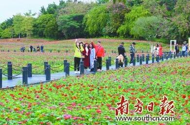 “2月、3月,海珠濕地將迎賞花好時節?!比~桀瀛說?!敖訖n”百日草花海、萬壽菊花海,預計2月底,海珠濕地一期、二期的石榴崗河沿岸數千株宮粉紫荊將盛開,形成一條長達3.2公里的宮粉紫荊花帶。此外,為優化樹木品種,海珠濕地引進了廣州櫻、寒緋櫻、小喬等適宜廣州氣候的近千株櫻花樹,近20畝櫻花林將成為海珠濕地的新看點。