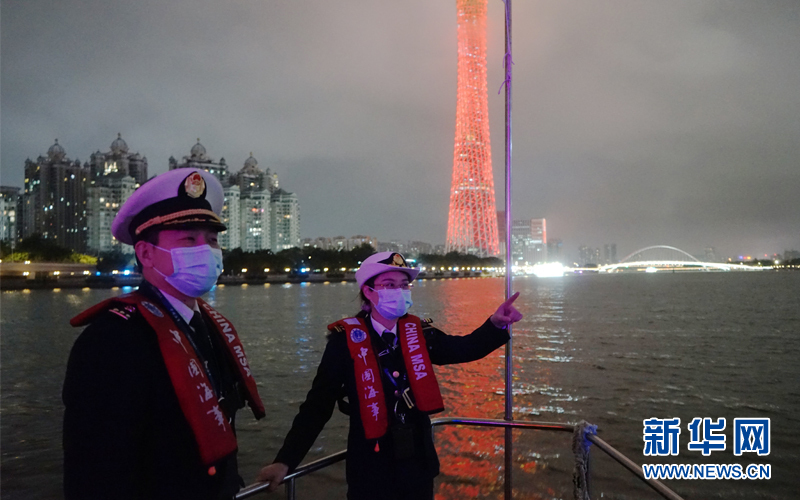 廣州水網發達,春運期間,市民平常搭乘的輪渡、旅客珠江日夜游呈現集中出行情況,這對水上安全監管工作提出了更高要求。夜晚巡航是鐘蓉和同事的必要工作。新華網發 (郭智航 攝)