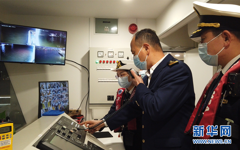“我們相當于‘水上交通警察’,維護好珠江通航秩序是我們的職責所在?!眻D為鐘蓉及同事對客運船舶進行通信設備檢查。新華網發 (郭智航 攝)