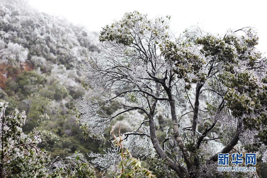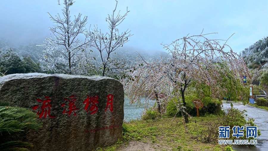 位于廣州市從化區流溪河國家森林公園的五指山景區,也出現了“冰掛”。新華網發(鄺健華 攝)